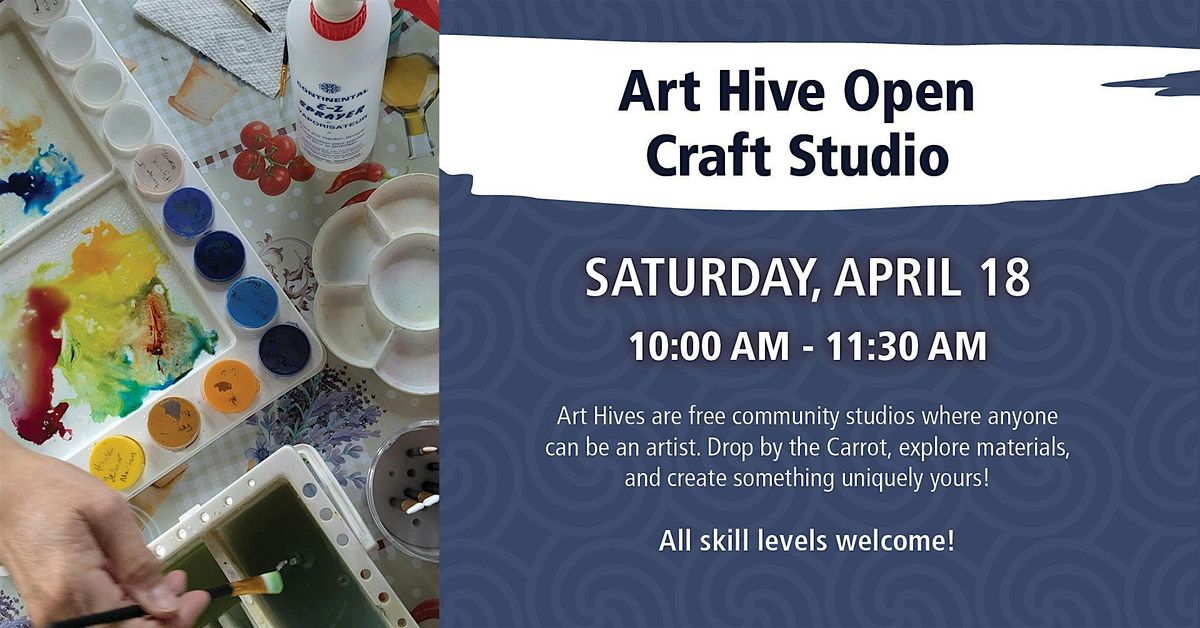 Art Hives are a global movement that create free community studios where anyone is welcome to be an artist. Drop by, discover materials, and create something unique to you at the Carrot!