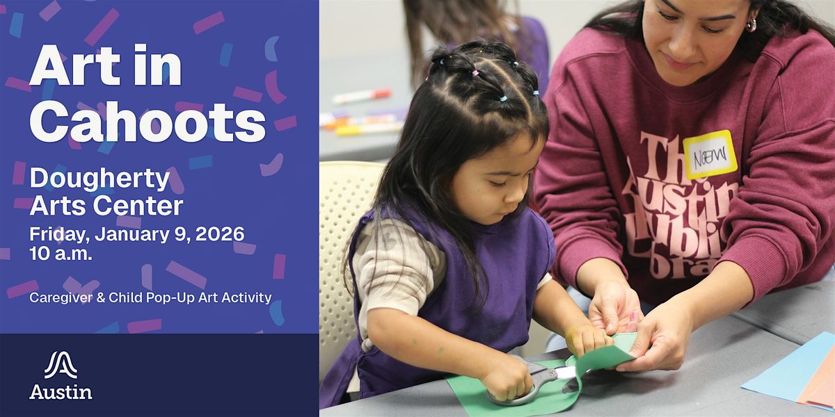 Art in Cahoots is a free one-hour event designed for prekindergarten-age students with an accompanying adult caregiver. Each will include sensory, multi-disciplinary, process-based arts activities for children and caregivers to experience together. Children can build social-emotional skills, familiarize themselves with a classroom setting, and learn while still under the wing of a trusted caregiver.