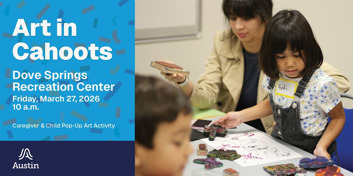 Art in Cahoots is a free one-hour event designed for prekindergarten-age students with an accompanying adult caregiver. Each will include sensory, multi-disciplinary, process-based arts activities for children and caregivers to experience together. Children can build social-emotional skills, familiarize themselves with a classroom setting, and learn while still under the wing of a trusted caregiver.