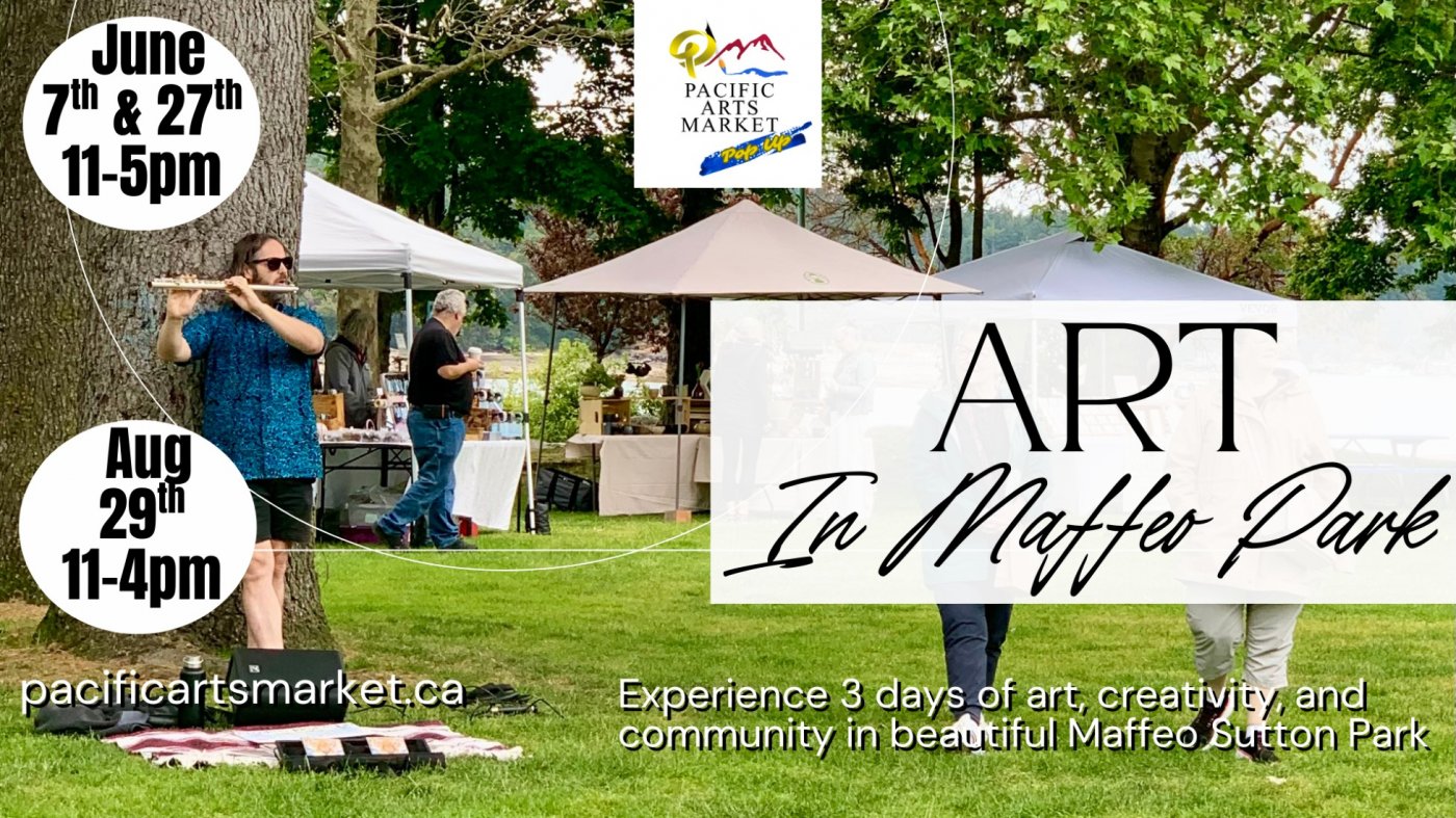 During 2 days in June and 1 day in August Pacific Arts Market is transforming the beautiful Maffeo Sutton Park into a vibrant and inspiring arts fair! At the park you'll have the opportunity to immerse yourself in a world of artistic expression where creativity knows no bounds.