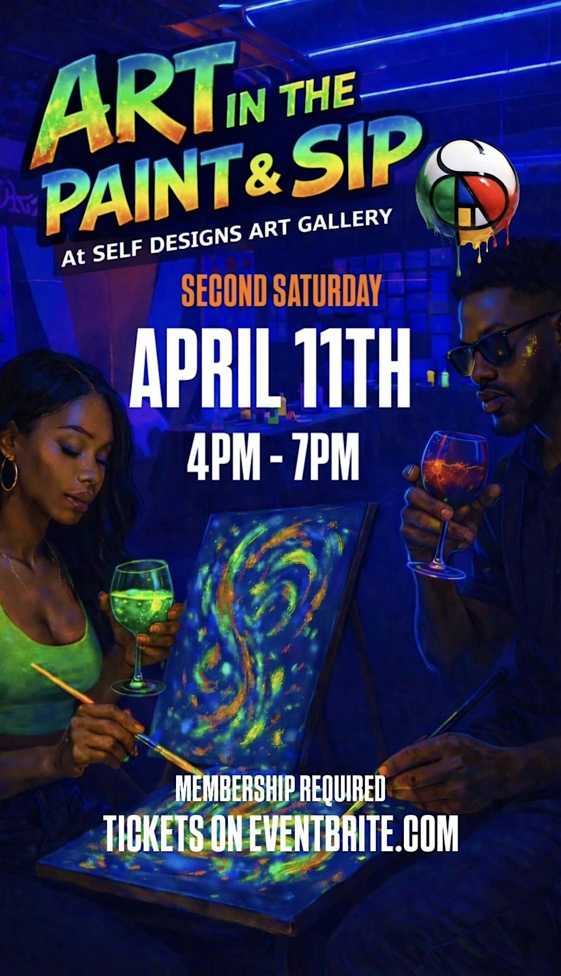 Join us on Second Saturday: 4:00 PM to 7:00 PM for a Paint & Sip!