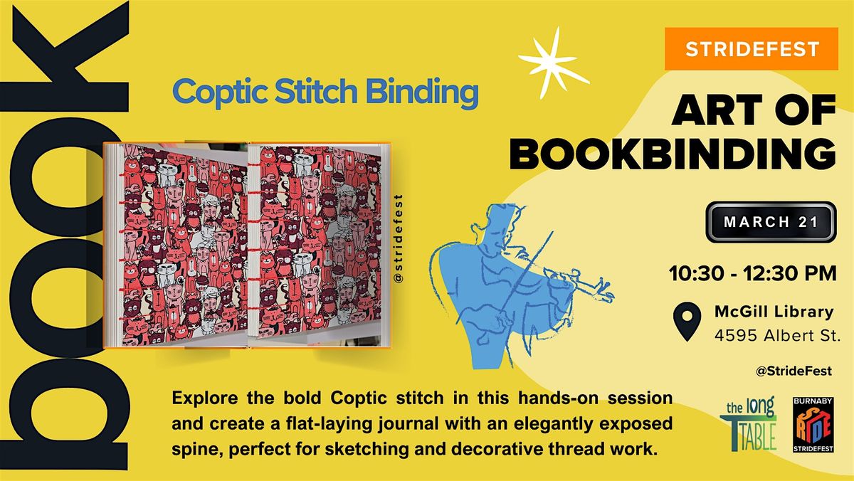 In this hands-on session, participants will explore a stitching style with a bold, open aesthetic. The Coptic stitch, developed by early bookbinders, produces journals that lie completely flat and feature an elegantly exposed spine, ideal for sketching and showcasing decorative thread work.