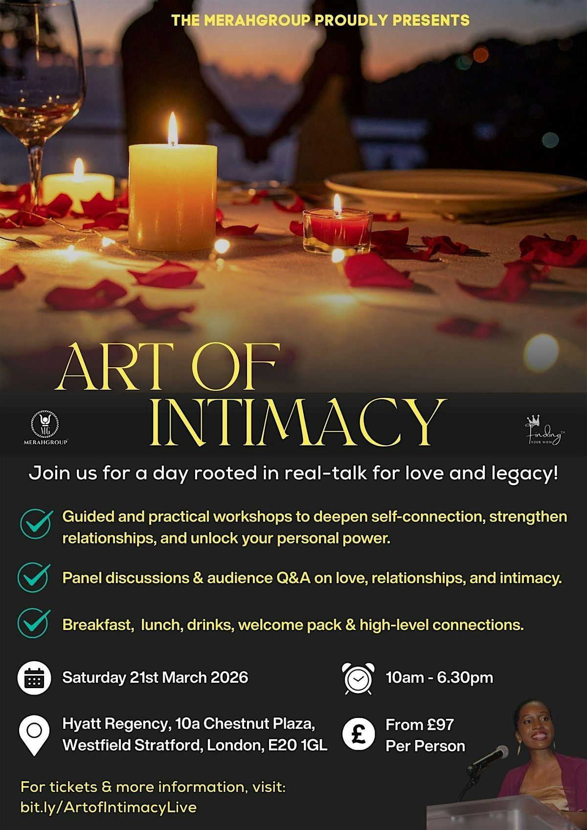Art of Intimacy Live is a transformative one-day experience designed for purpose-driven adults in a safe, judgement-free space, who are committed to doing the deep work on love, relationships, and personal power.