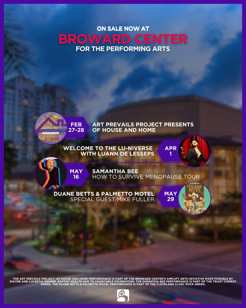 π Welcome to Art Prevails Project - Of House and Home at Broward Center - Abdo New River Room, where dreams come alive and possibilities are endless! ποΈ Join us at Broward Center - Abdo New River Room in the heart of Fort Lauderdale, FL for an event that defies expectations. π On February 27th, 2026 at 08:00 PM, be part of something truly extraordinary as we bring together innovation, entertainment, and pure magic. β¨ Every aspect has been carefully designed to ensure an unforgettable experience for all our guests. Whether you're seeking adventure, inspiration, or simply a break from the ordinary, this event promises to deliver beyond your wildest dreams. π Prepare for a journey into the extraordinary!
