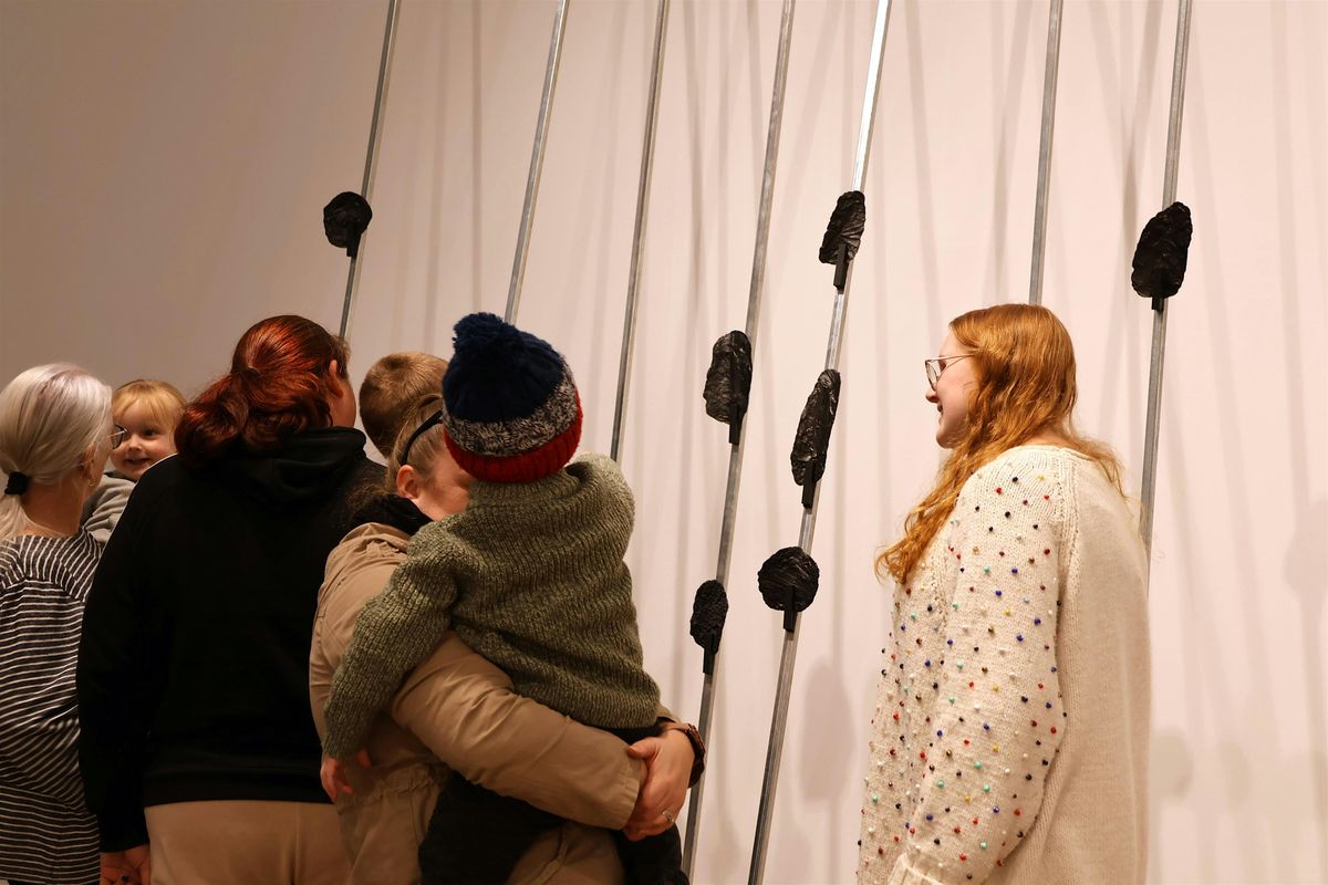 Image credit: Bianca Hester, 'Fragments of plant life from both sides of the extinction boundary, summoned by the ground' (detail), 2022-24, painted bronze with surface impressions of plant life from geologic periods including the Permian, Triassic, and Holocene, galvanized steel, neodymium magnets, blast furnace rubble, galvanised steel. Photograph by Goulburn Regional Art Gallery.