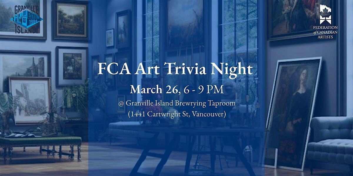 Think you know your art history? Gather your friends, form your ultimate team, and join us for FCA Art Trivia Night in partnership with Granville Island Brewing! Whether you’re a practicing artist, an art student, or just love a good challenge, this is your chance to test your knowledge of famous artworks, iconic artists, contemporary culture, and surprising creative facts all in a relaxed brewery setting.