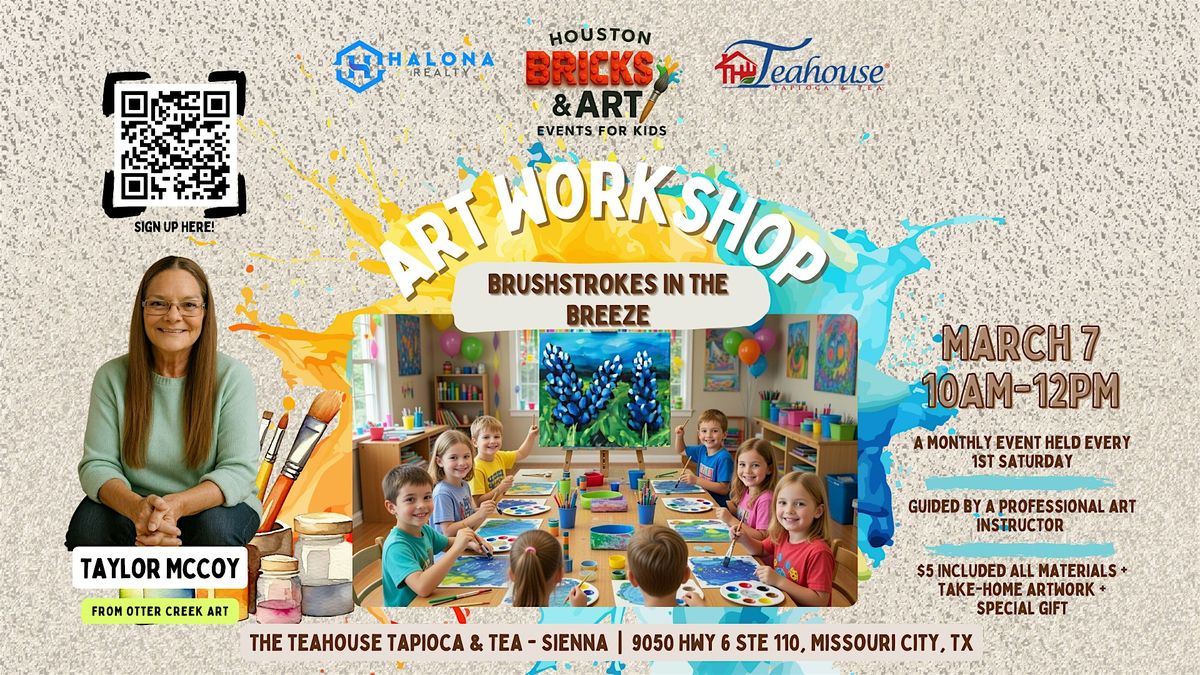 Join us on Saturday, March 7th for our monthly kids art workshop featuring Brushstrokes in the Breeze — where young creators will paint vibrant wind-swept landscapes on canvas, bringing home a stunning piece of art inspired by nature's gentle flow.