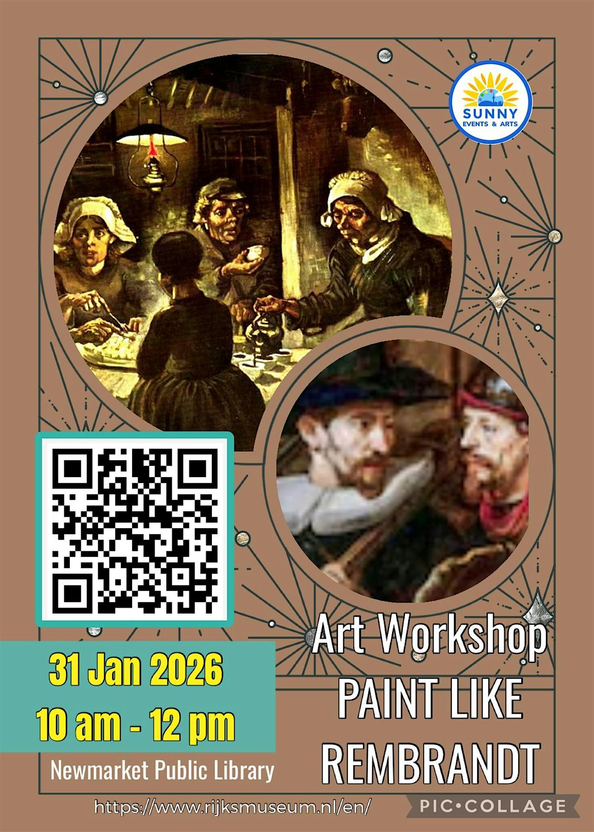 Discover the dramatic beauty of Rembrandt’s style in this hands-on art workshop for adults of all skill levels. Whether you are a beginner or an experienced painter, this workshop offers a relaxed and inspiring environment to explore classical techniques with modern materials.