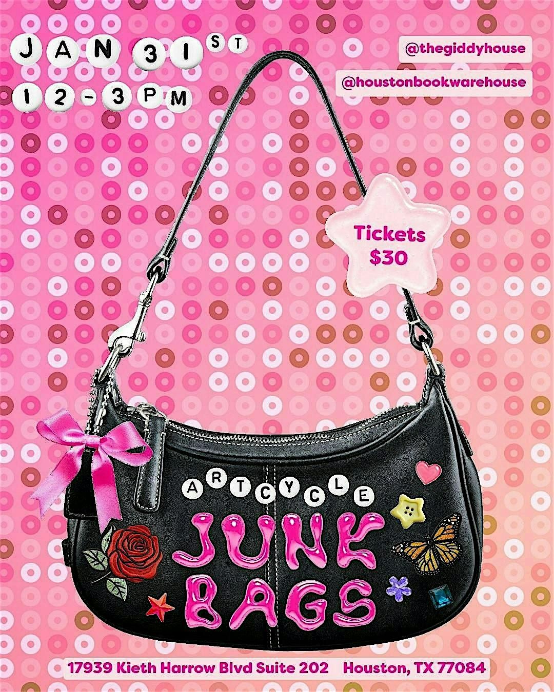 Its time to give that old bag a new look at Artcycle: Junk Bags on Jan 31st from 12:00 - 3:00 PM. This is a BYOB (Bring Your Own Bag) activity. Artcycle is a way to recycle or upcycle and item in a creative way to add value to it. We'll have all the supplies you need to junk your bag and decorate to your hearts desire.