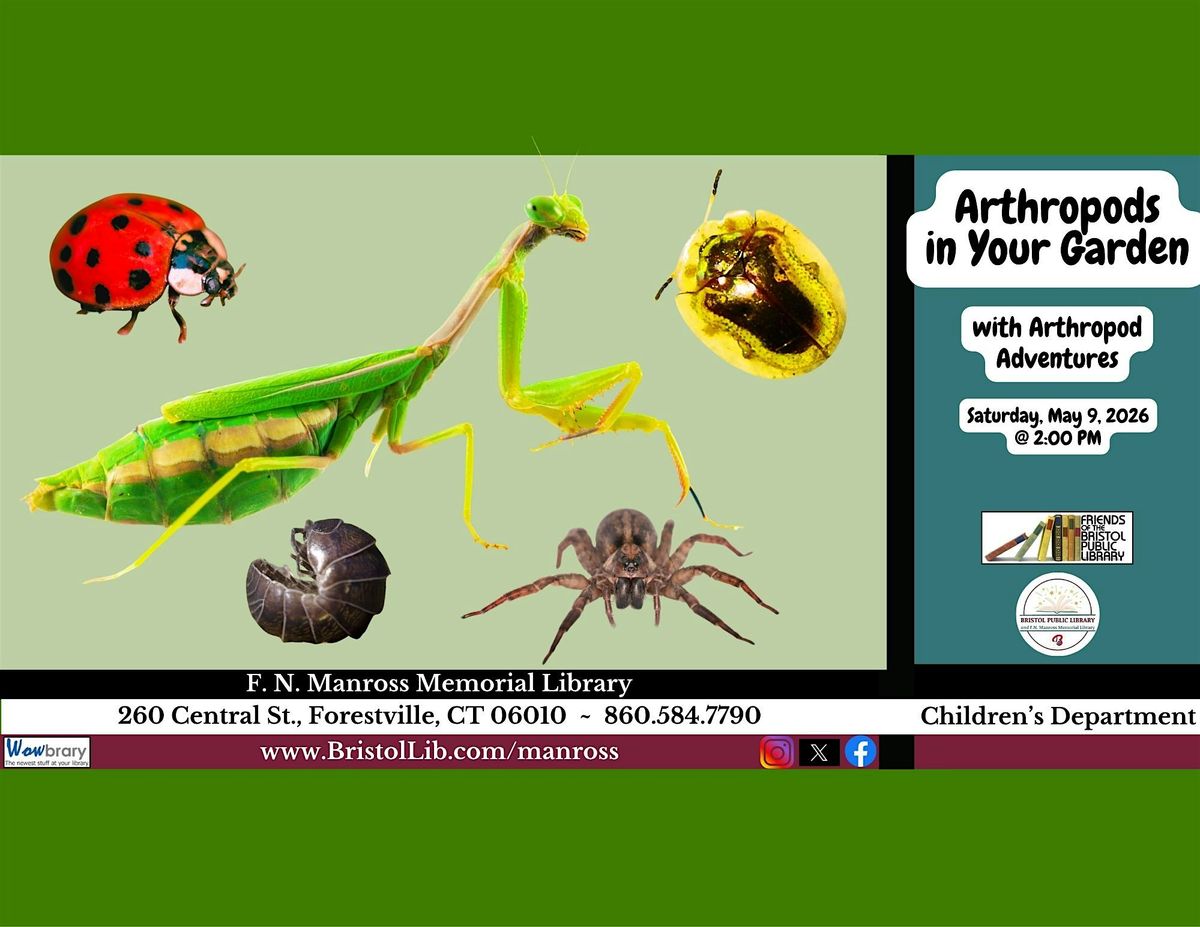 Learn about the cool crawling creatures we can find outside! Jesse Hurlburt with Arthropod Adventures will share his arthropods. Ages 6+ and family-friendly. Please register with a phone number for one confirmation call. Manross Library #860-584-7790.