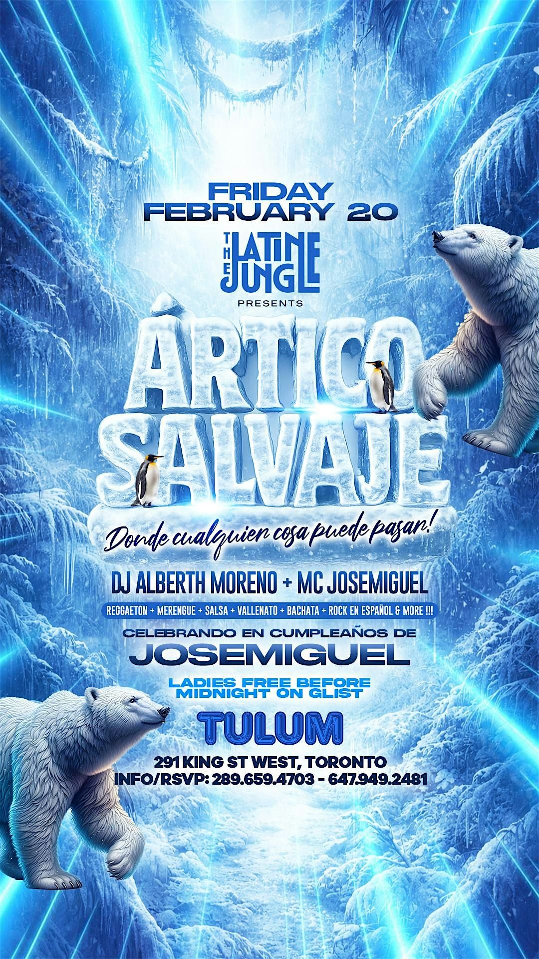 Prepárate para una experiencia latina única en Toronto, con música, energía salvaje y un ambiente perfecto para celebrar en grande. ÁRTICO SALVAJE combina lo mejor del nightlife latino con una temática ártica que te hará vivir una noche diferente, intensa y llena de sorpresas.