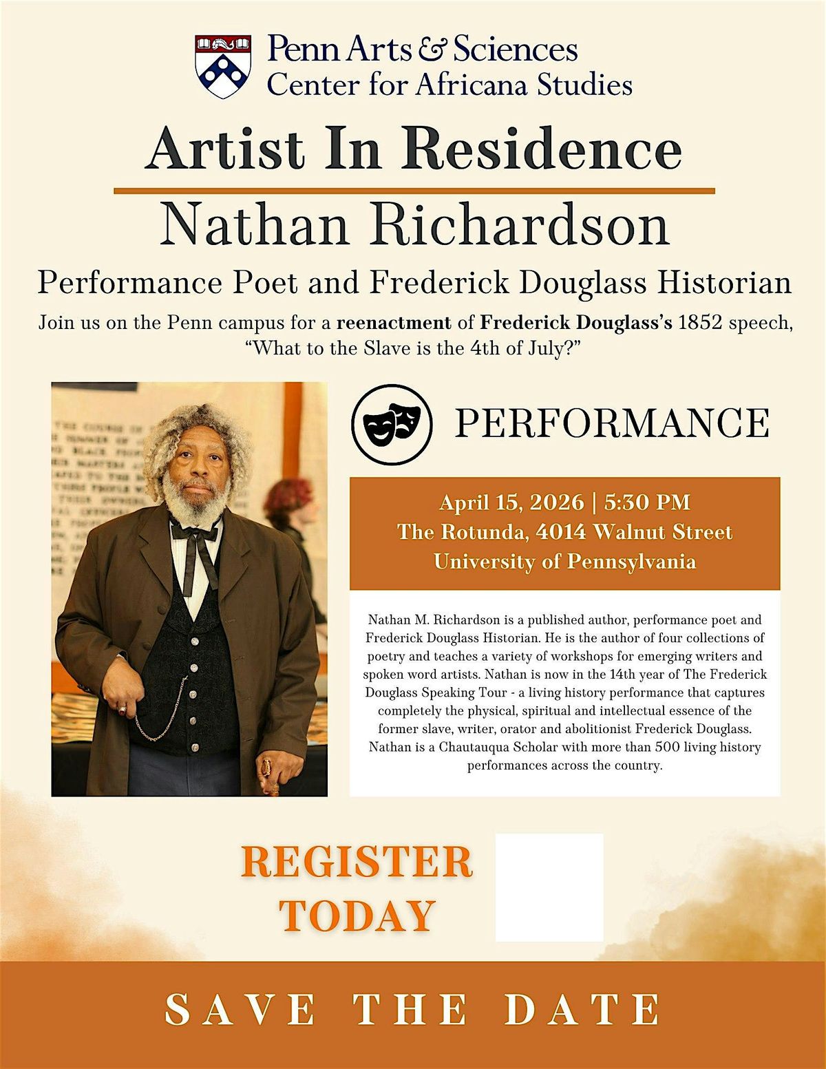 Join us as we welcome Performance Poet and Frederick Douglass Historian Nathan to Penn campus! This event will be live performance.
