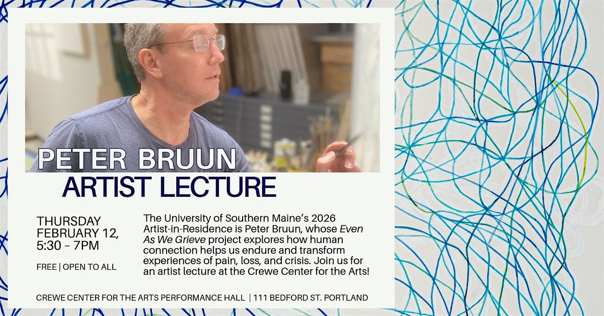 Join the University of Southern Maine Art Galleries and the University of Southern Maine Art Department as we welcome Spring 2026 Artist-in-Residence, Peter Bruun for a campus lecture. Working under the aegis of Bruun Studios, is an artist, writer, curator and cultural organizer. For over 30 years, he has pursued a practice making paintings and drawings that have inspired him to create community-engaged art exhibitions, arts-based social justice projects, humanistic online publications, and innovative organizations using art to make a positive difference in people’s lives.