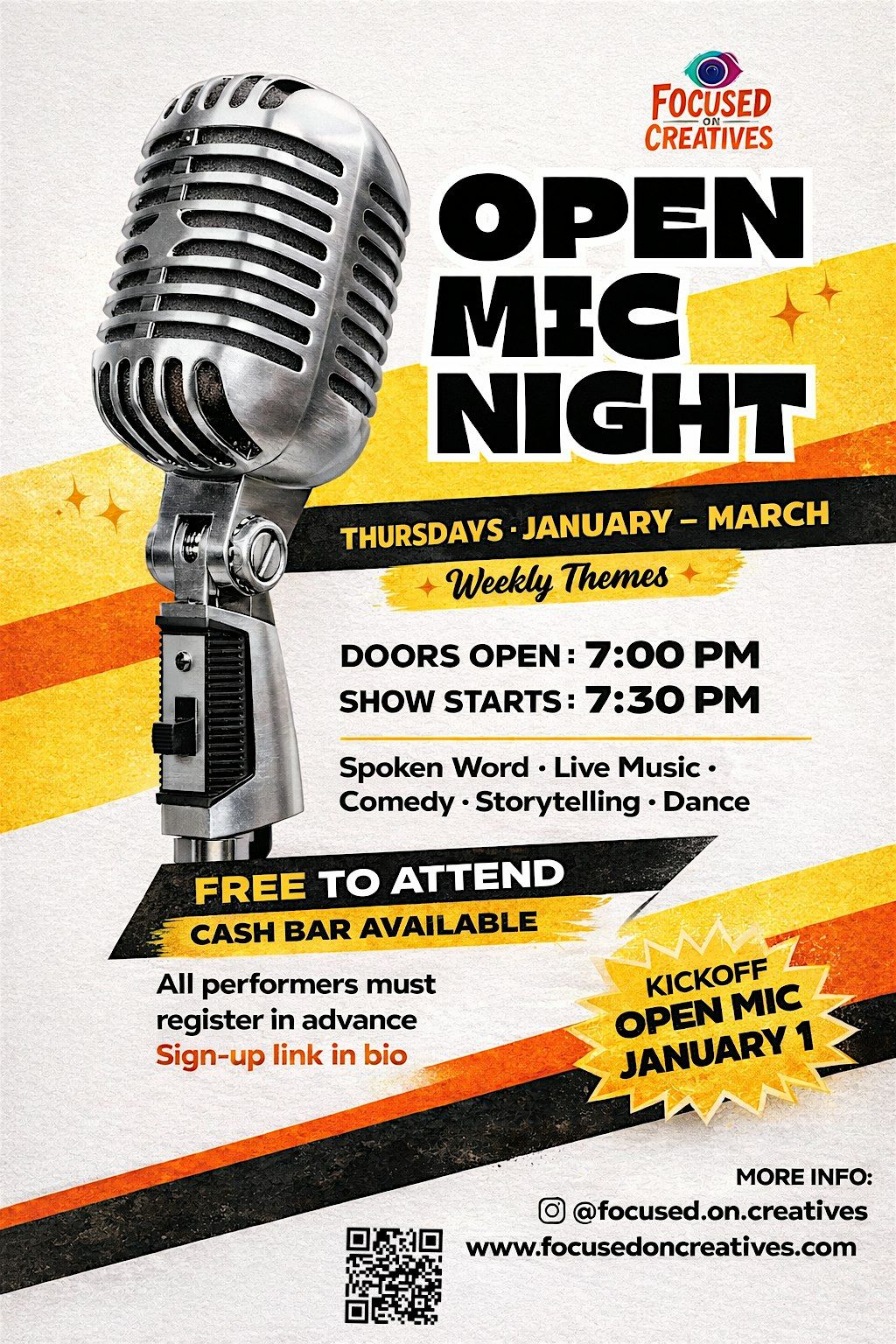 Artists secure their performance slot with a $40 commitment and receive 3–4 audience tickets to distribute.