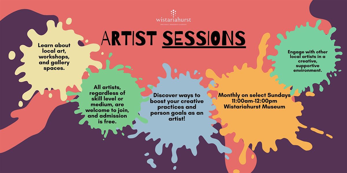 Wistariahurst Museum está encantado de colaborar con Linda Devine y ofrecer este espacio para acoger y apoyar a los artistas locales. Las Sesiones de Artistas son perfectas para aquellos que buscan establecer contactos, participar en la creación artística o compartir soluciones a problemas comunes. Estas sesiones están orientadas a ayudar a los artistas de todos los niveles de habilidad y medios de impulsar sus prácticas y potencial. Somos un espacio acogedor para los artistas que fomenta la creatividad y apoya el crecimiento de los artistas de esta región, razón por la cual estas sesiones se ofrecen sin coste alguno y son accesibles a todos los artistas que buscan elevar sus carreras.