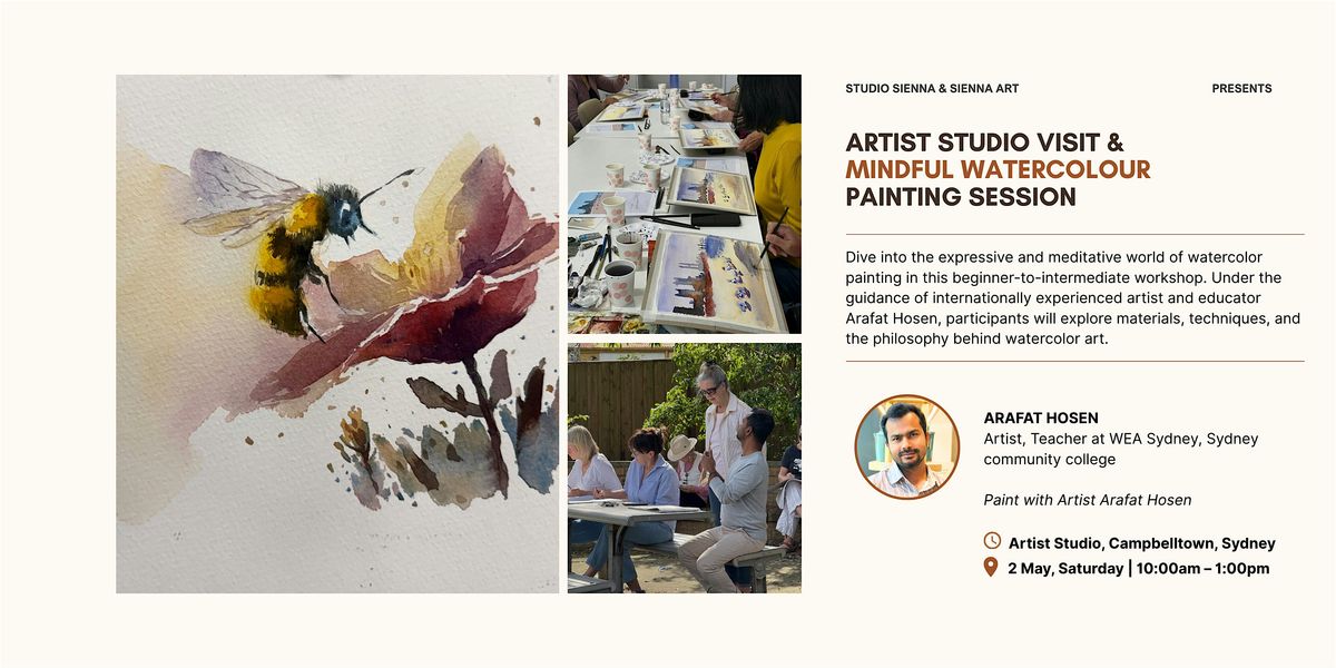 You are warmly invited to a studio-based mindful watercolour painting experience with artist and educator Arafat Hosen at his studio in the beautiful suburb of Campbelltown, Sydney.