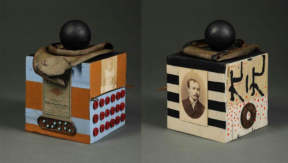 Balian's narrative work invites the viewer to conjure their own interpretations of what they see in a dynamic rather than a literal way. There are implicit narratives in the many layers of each complex piece that are intended to evoke memories or ignite the viewer's imagination. And the different, often disparate elements encourage repeated attention which can generate new stories and meaning for the viewer. The artwork in Show, Don't Tell is mixed media and includes decades worth of found materials and ephemera.