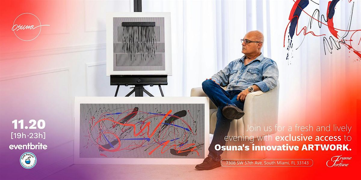 Take this opportunity at our VIP preview event for your chance to see an innovative artist who pushes art into a whole new territory. By fusing kinetic art, abstract art, and action painting, Osuna’s artworks appear to create an illusion of movement.