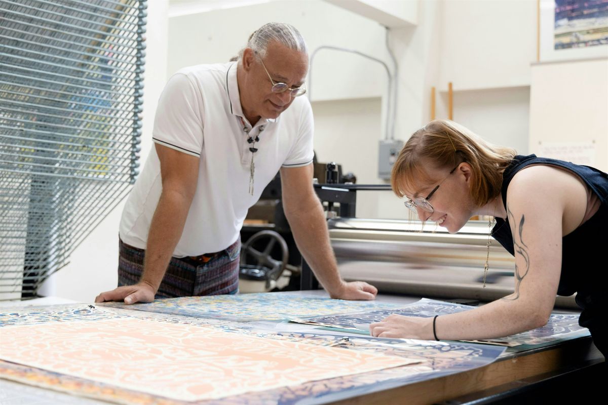 Artist and Painter Jocelyn Akwaba Matignon is best known for his works referencing and researching his cultural and spiritual roots, studying African, American, and European spirituality and mythology to find its meaning in the modern world. Akwaba Matignon recently completed an artist redicency with Brandywine Workshop and Archives to create a print titled "Seven Paddlers" inspired by this cultural heritage.
