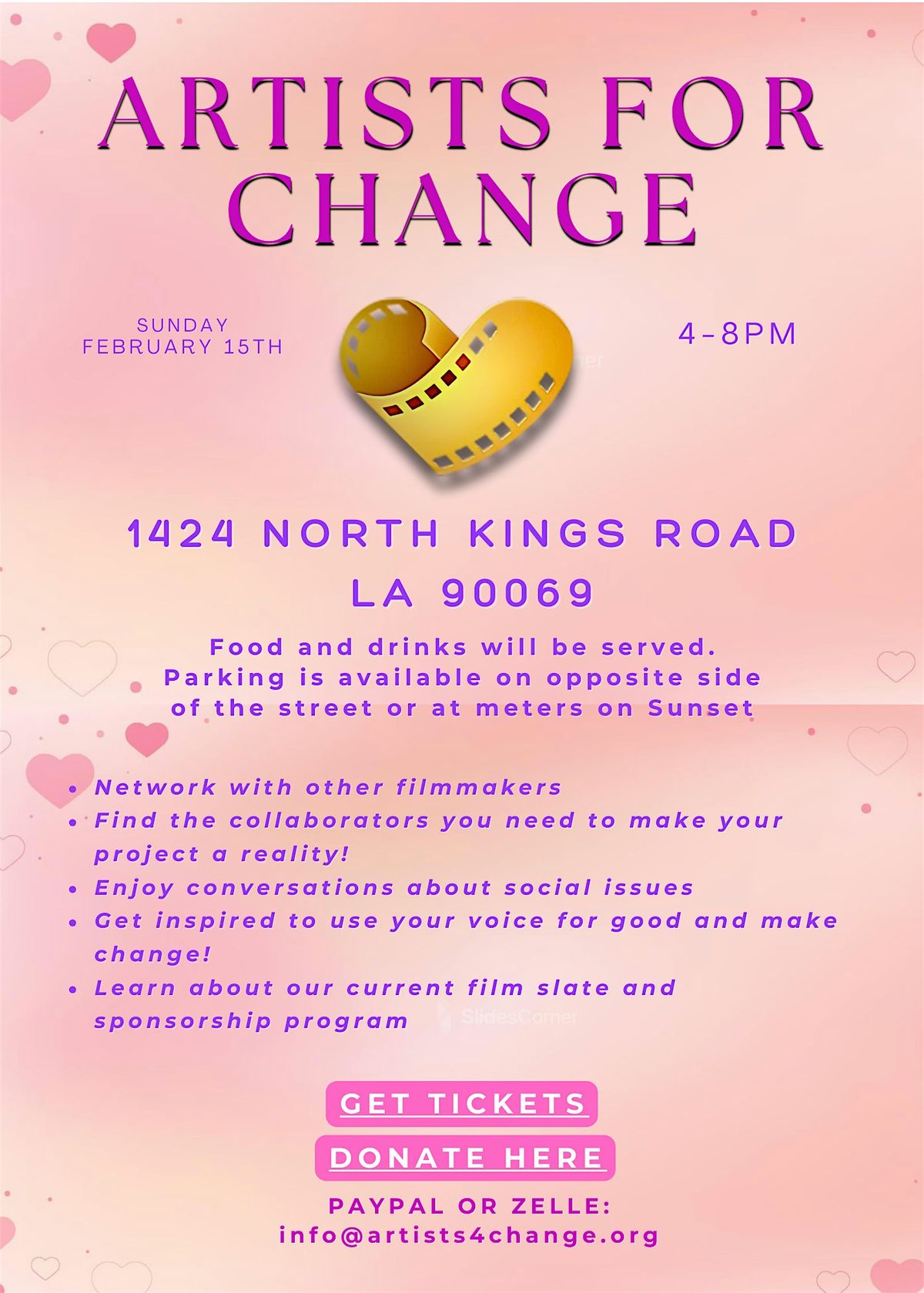 Come join us at the Artists For Change February Networking Event to connect with like-minded creatives, share ideas, and inspire positive change!