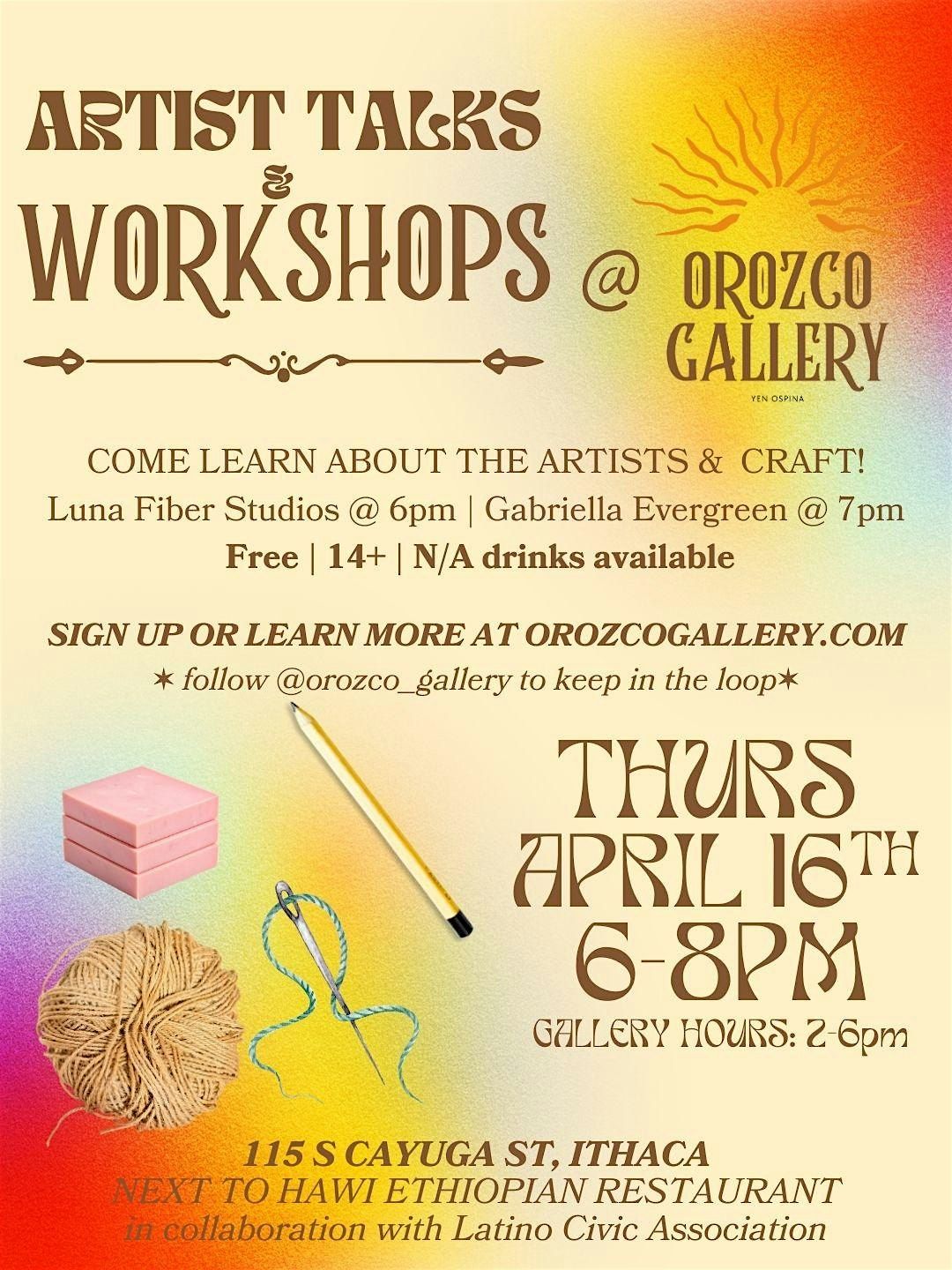Curated by Yen Ospina as part of Orozco Gallery’s month-long pop-up, this in-person artist talk pairs storytelling with a hands-on mini workshop. Learn directly from artists and explore creativity together.