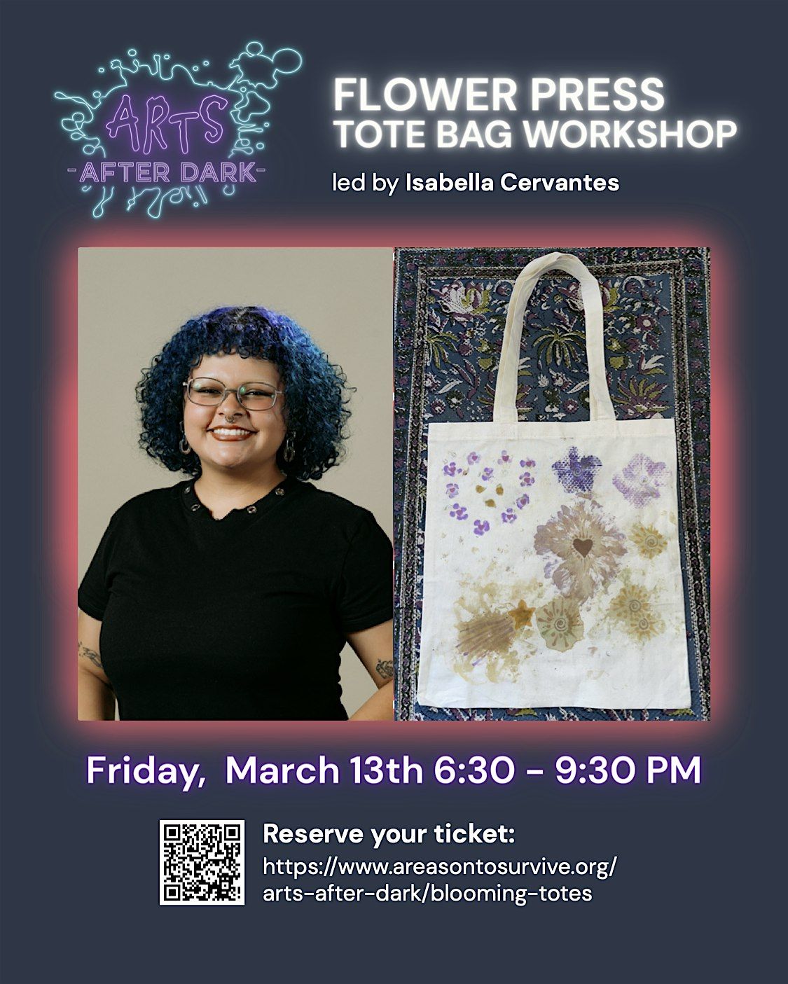 Join us on March 13th from 6:30 to 9:30 PM for ARTS After Dark, Blooming Totes: A DIY Flower Pressing Workshop!