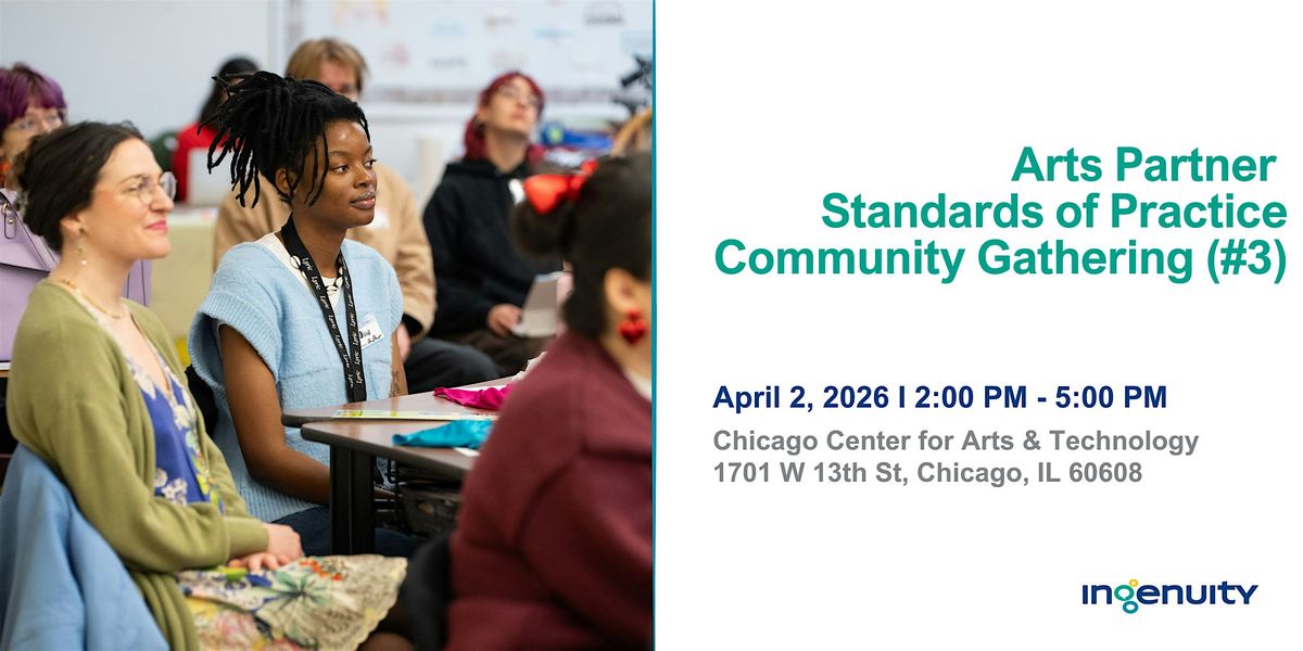 Join arts partners from across Chicago for the next Arts Partner Standards of Practice (APSP) Community Gathering, part of Ingenuity’s ongoing monthly series focused on shaping the next phase of the (APSP).