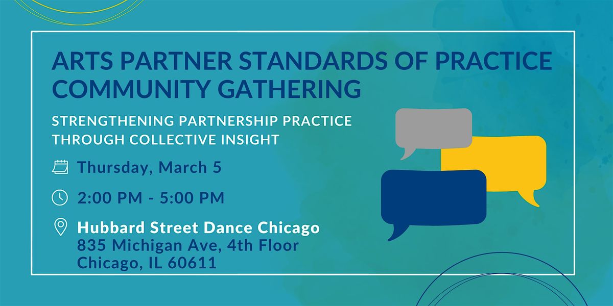 Join arts partners from across Chicago for the next Arts Partner Standards of Practice (APSP) Community Gathering, part of Ingenuity’s ongoing monthly series focused on shaping the next phase of the (APSP).