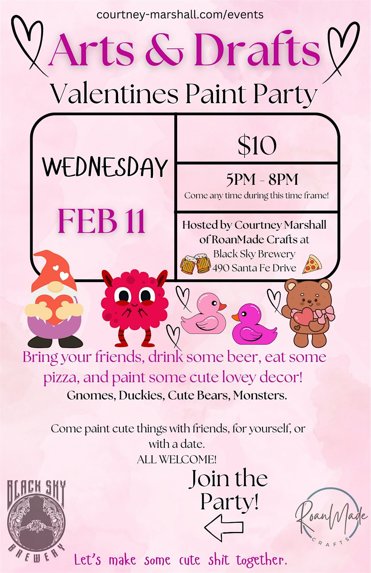 Join Courtney Marshall at Black Sky Brewery on Wednesday February 11th any time between 5pm-8pm to paint some cute holiday decor!