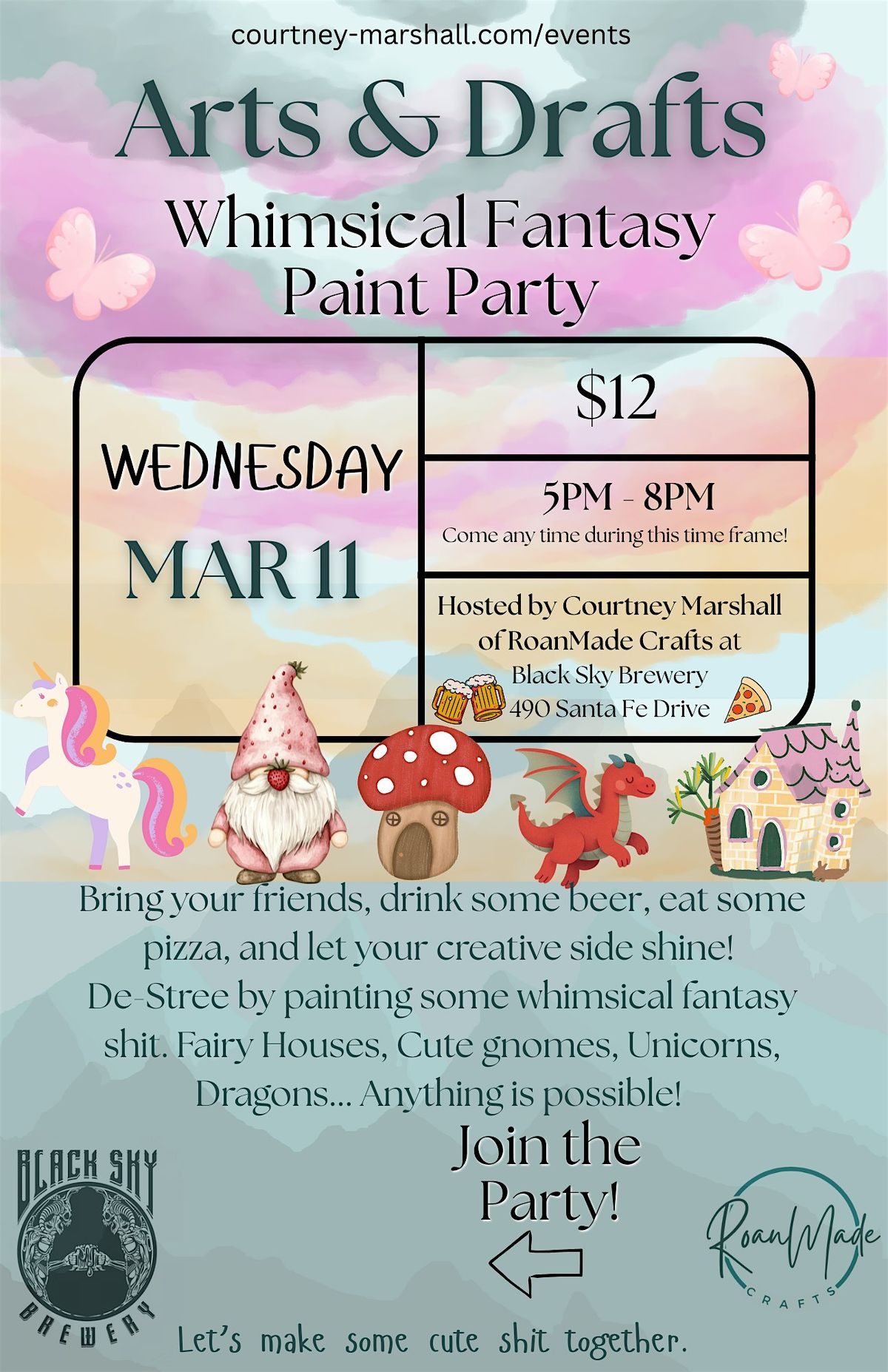Join Courtney Marshall at Black Sky Brewery on March11th any time between 5pm-8pm to destress by making yoru own fantasy world!