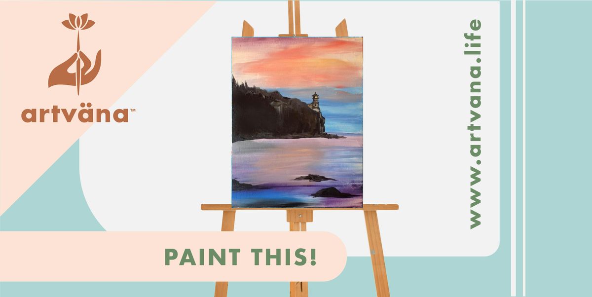 This week we’re painting the “Lighthouse” on canvas, great for beginners and experienced painters alike. Your Artvana Artist Coach will guide you step-by-step as you create your own beautiful canvas