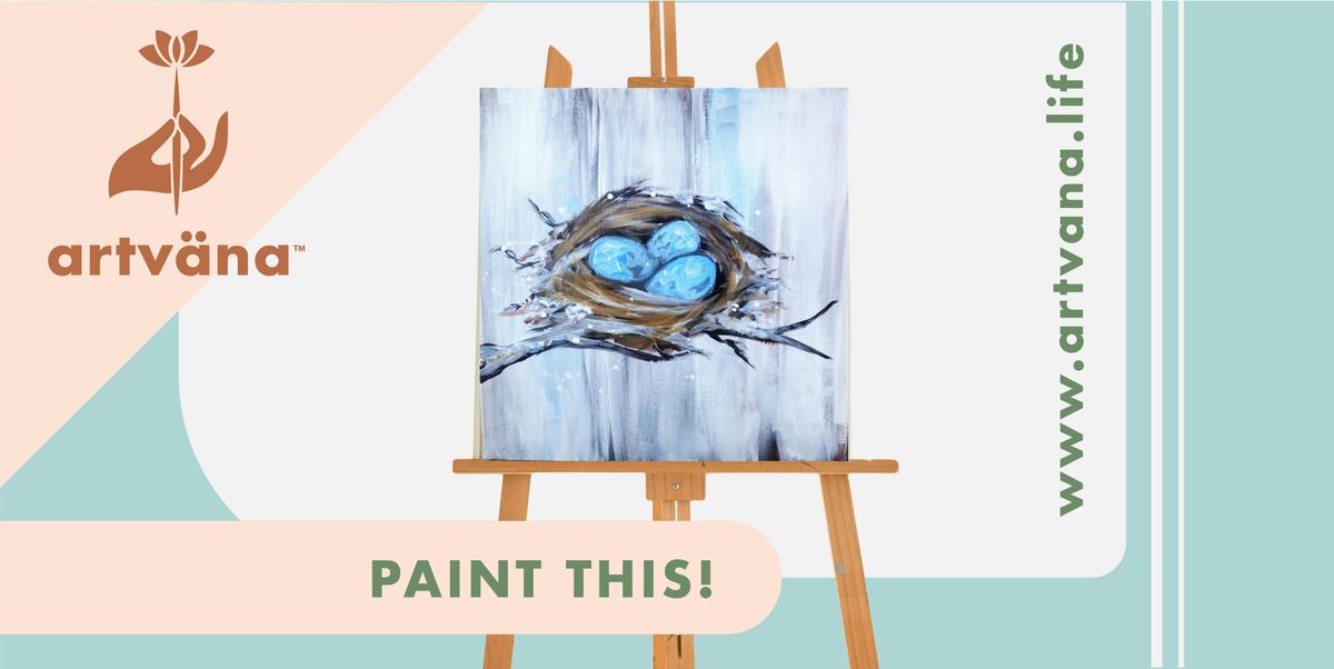 🎨 We’ll be painting the “Robins Nest” artwork on a canvas for this class. No experience needed! Your Artist Coach will guide you step-by-step, helping you tap into your creativity in a relaxed, no-pressure environment.