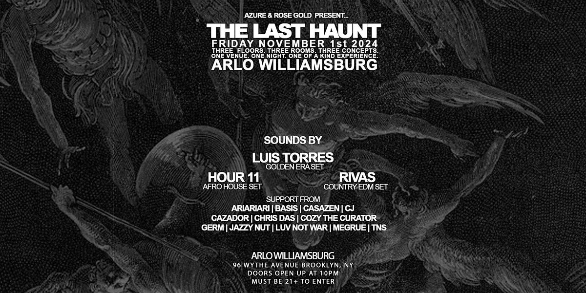 Join us this Friday November 1st 2024 at The ARLO Williamsburg (formerly the williamsburg hotel). We will be Utilizing all spaces in the luxurious hotel to provide you 3 unique Halloween inspired concepts in each of the event spaces, 3 stages, 3 DJ line ups, 3 concepts, & 'horror night' style live entertainment.