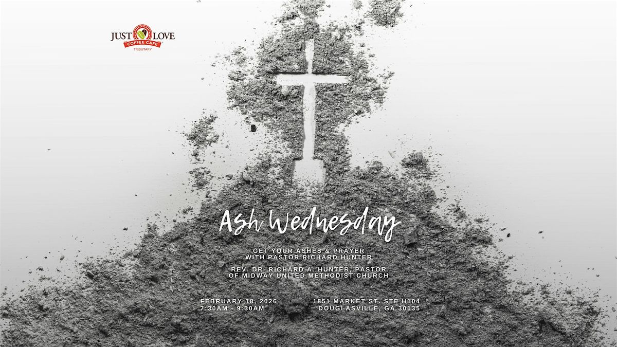 Join us in person on Ash Wednesday, February 18th. Pastor Richard Hunter will be at Just Love Coffee in Douglasville from 7:30-9:30 a.m. to pray with anyone who needs encouragement and hope. He will also place ashes on the forehead of anyone desiring this traditional way to start the season of Lent. This is an old custom of many churches that is a sign of repentance and the desire to walk closer to Jesus Christ as we prepare for Easter Sunday.