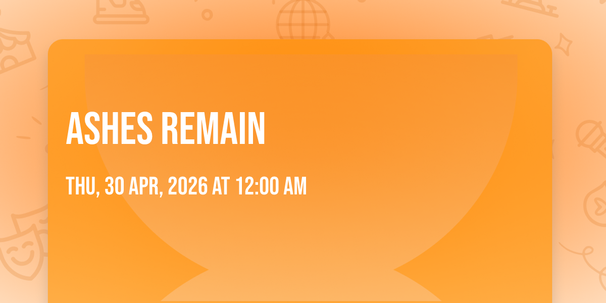 📍 Location: 35.5611, -97.5315✨ Experience the magic of Ashes Remain, where moments become memories that last a lifetime! 🏛️ The iconic 89th Street Collective in Oklahoma City, OK sets the perfect stage for an unforgettable celebration on April 30th, 2026 at 12:00 AM. 🌟 It's been a curated experience that brings together the best of entertainment and innovation, creating an atmosphere of wonder and excitement. From the moment you arrive, you'll be immersed in a world where the ordinary transforms into the extraordinary. 🎊 Book early to secure your place in what promises to be an event that will be talked about for years to come!