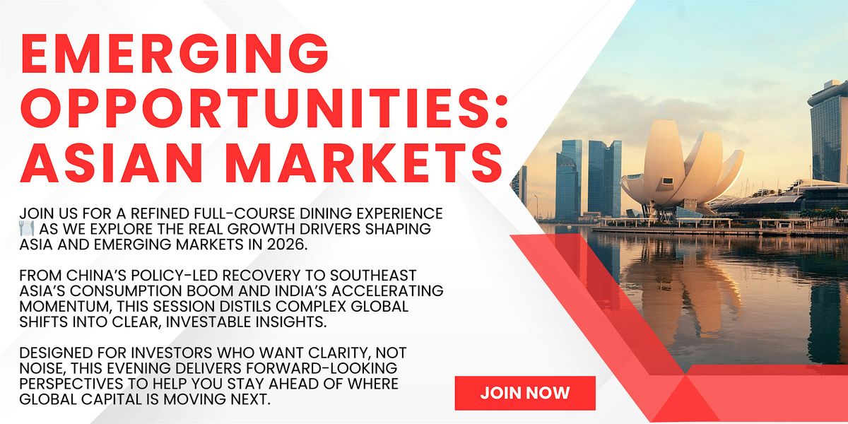 Join us for a refined full-course dining experience 🍽️ as we explore the real growth drivers shaping Asia and emerging markets in 2026. From China’s policy-led recovery to Southeast Asia’s consumption boom and India’s accelerating momentum, this session distils complex global shifts into clear, investable insights.