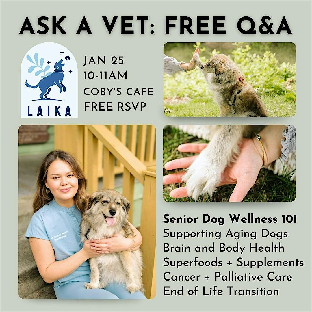 Join us Sunday, January 25 from 10–11am for a cozy morning all about senior dog wellness with Dr. Ksenia Popov from @laikavetservices.