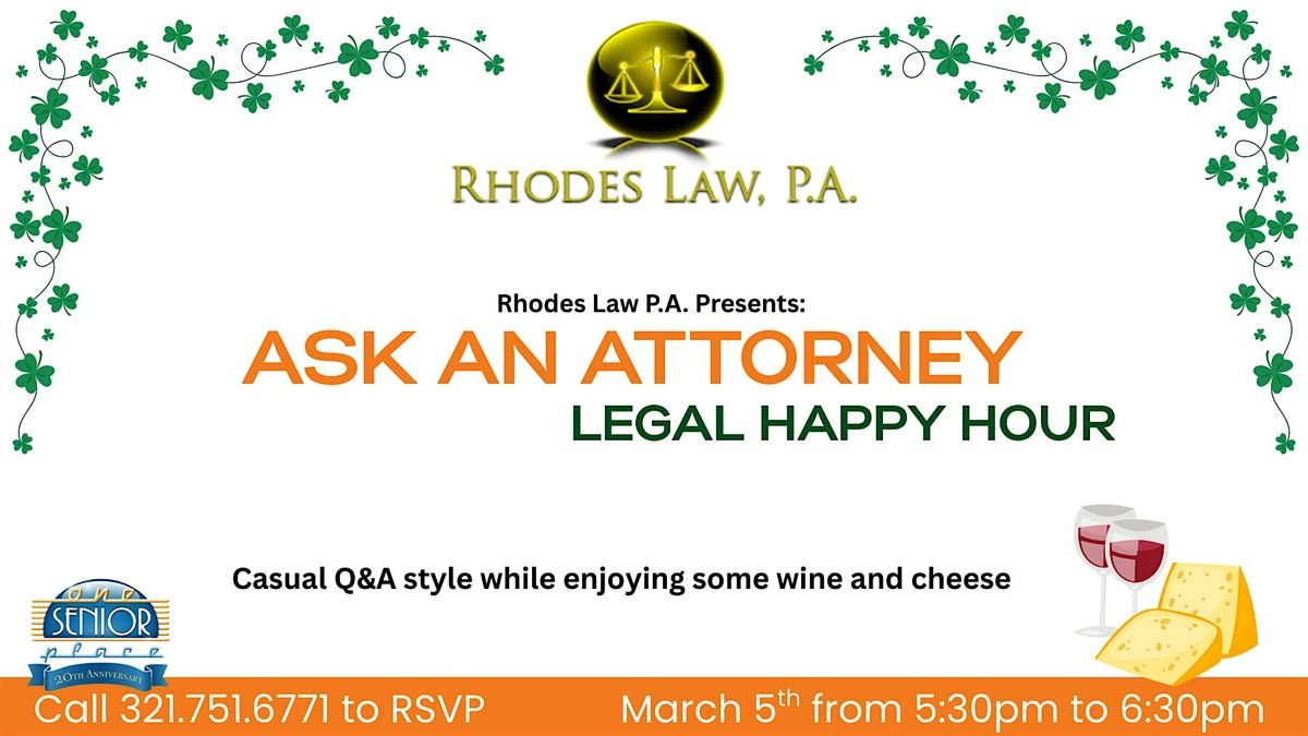 Ask an attorney your legal questions over cocktails & appetizers. Wills, probate, Medicaid & more.About this Event