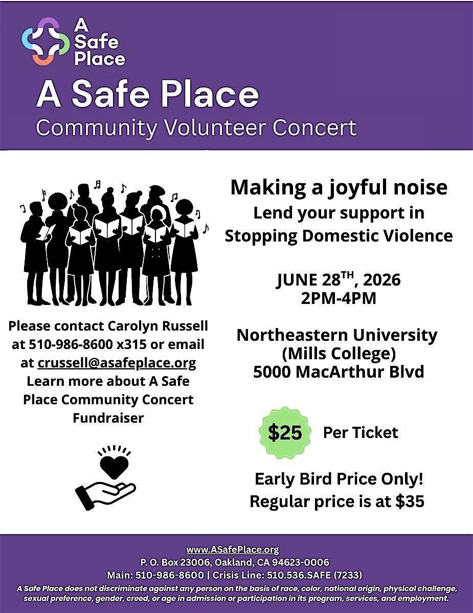 Join us A Safe Place for our Community Volunteer Concert Fundraiser!