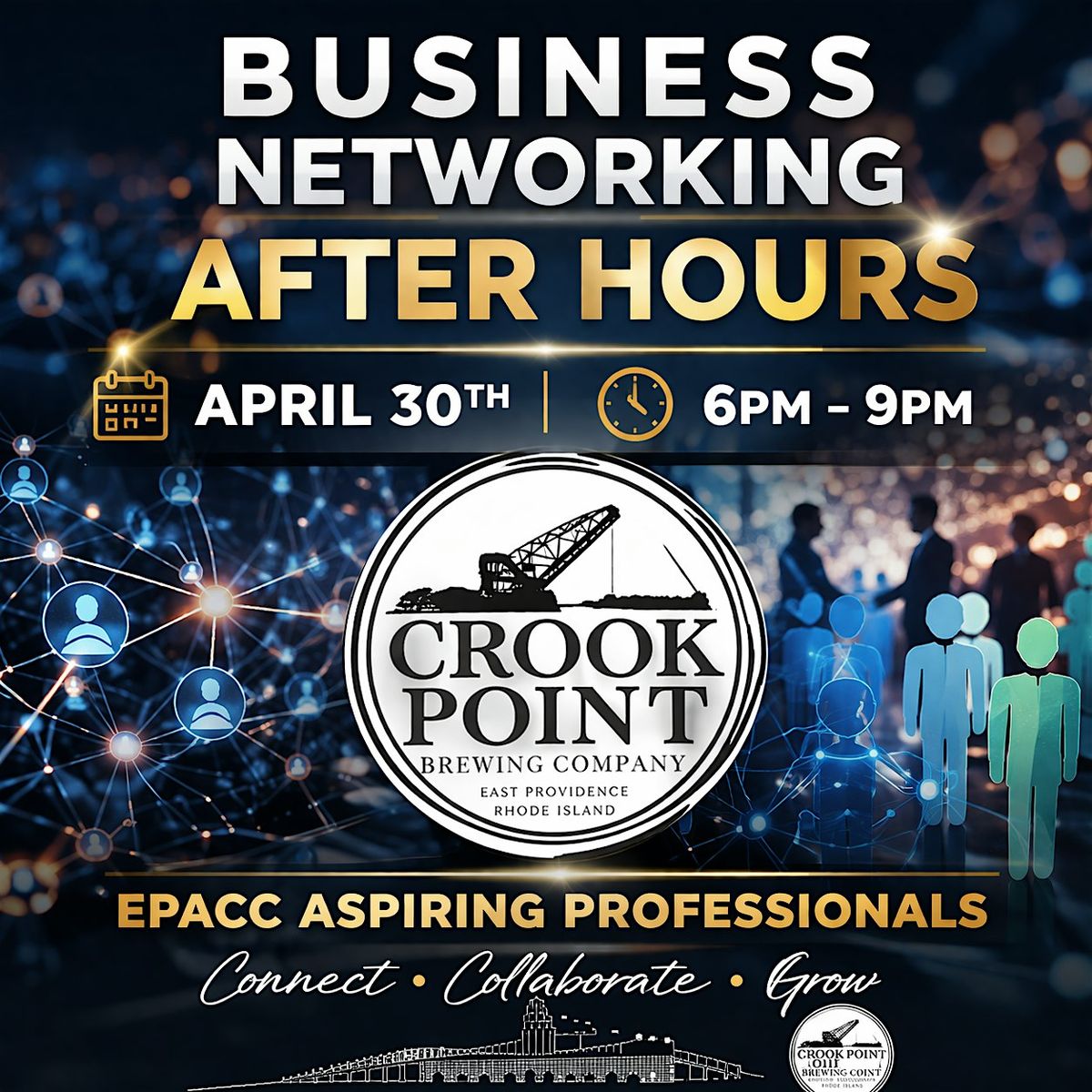 Business Networking After Hours April 30, 6–9PM at Crook Point. Free food, discounted drinks & great connections with EPACC professionals!