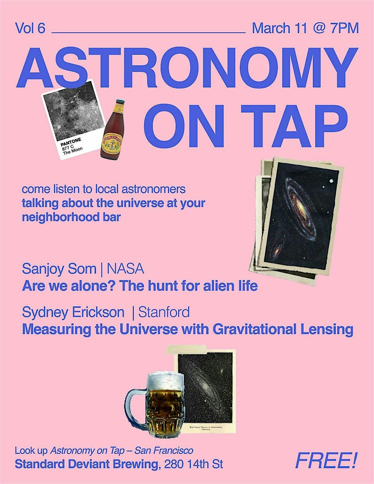 Astronomy on Tap takes place in cities all over the world. This is a revival of the San Francisco chapter, which regularly hosted events before the pandemic. We're excited to be back on a monthly basis!