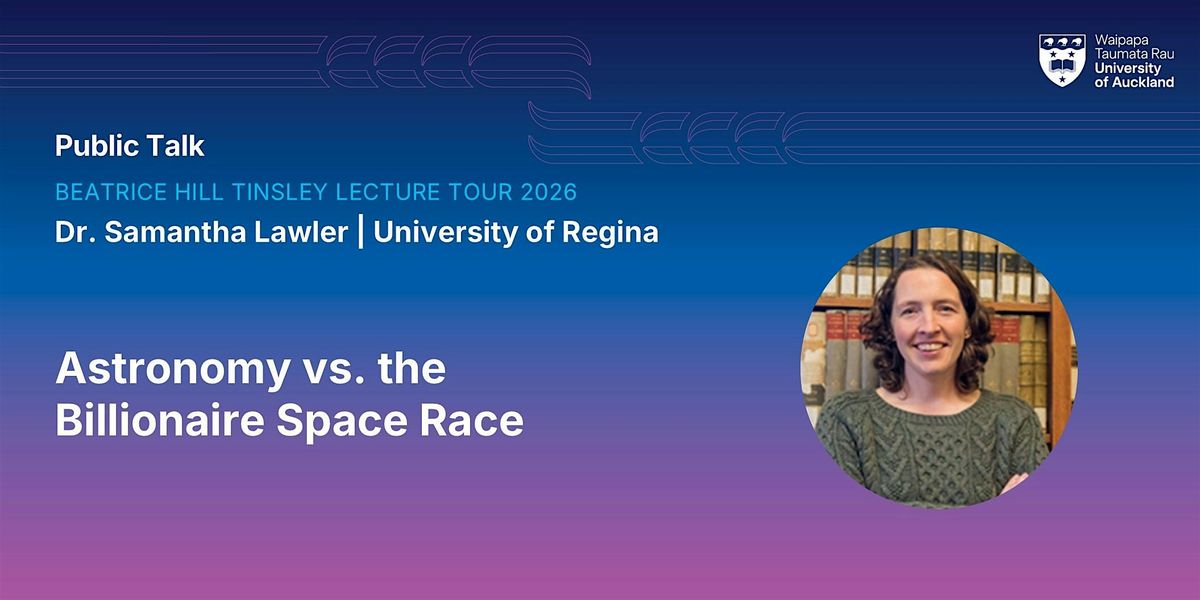 This event is part of 2026 Beatrice Hill Tinsley Lecture tour, an annual series honouring the remarkable achievements of New Zealand-raised astronomer, Beatrice Hill Tinsley.