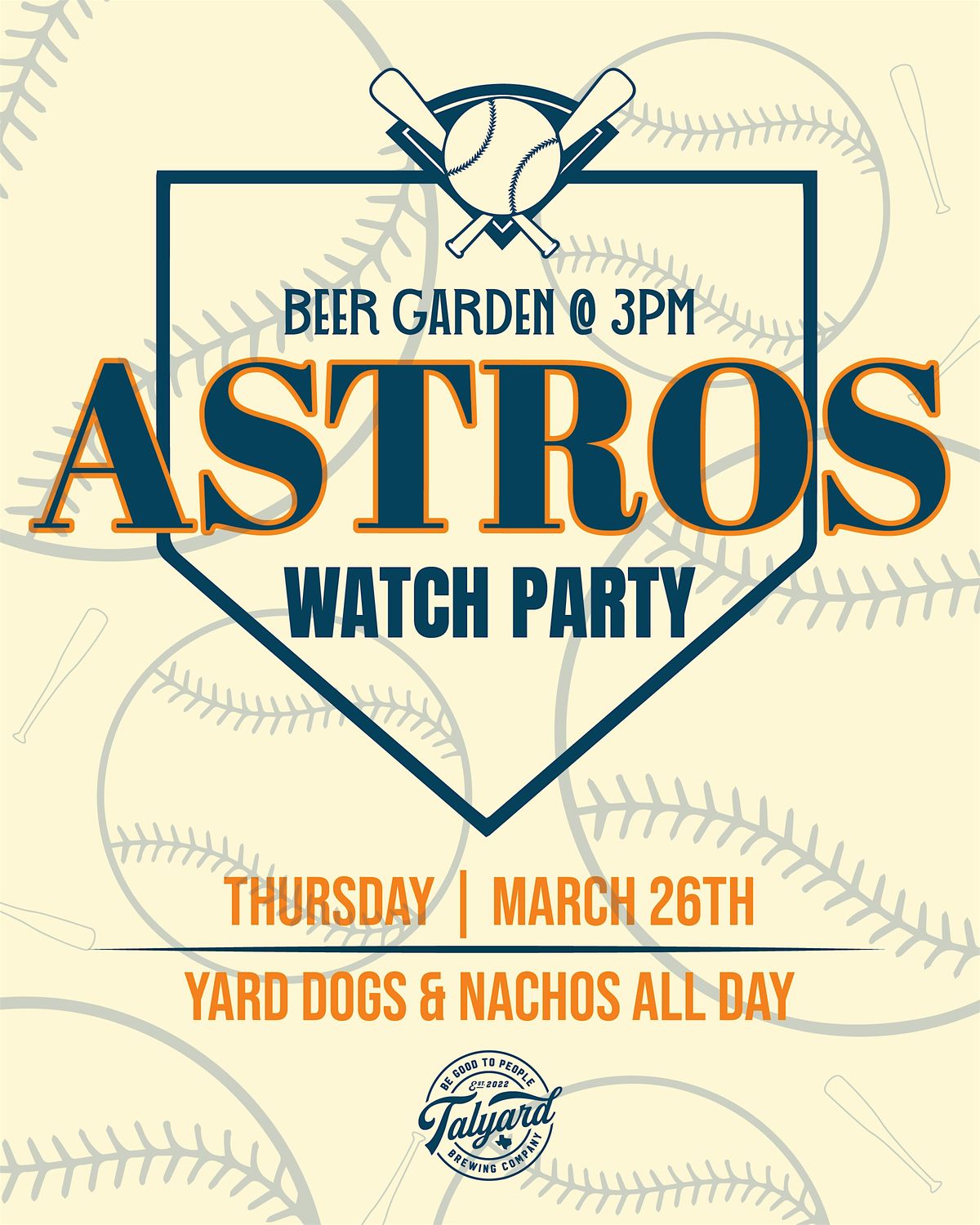 Join us in the Beer Garden for Yard Dogs and nachos as we kick off Astros Opening Day. We’re fired up for the season—throw on those jerseys and come watch the game with us.