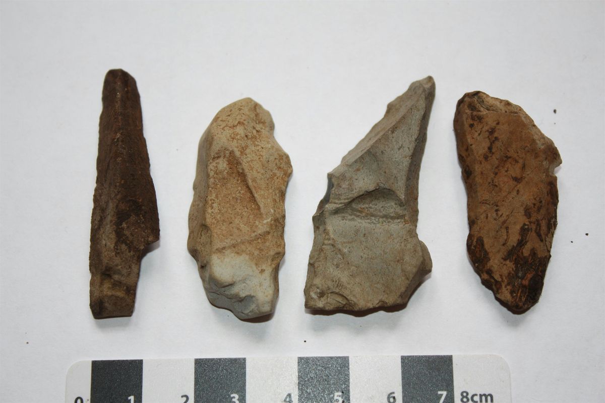 Images: Rolled stone tools from north Skye (© Karen Hardy) and circular stone alignment within the Sconser foreshore (© Journal of Quaternary Science).