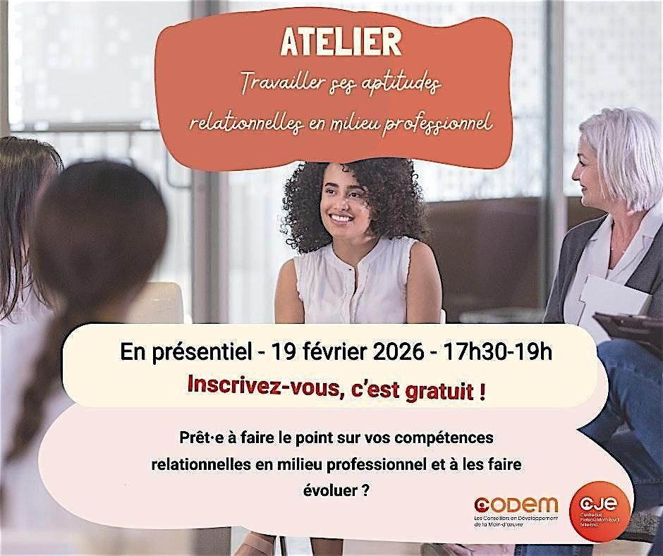 Cet atelier propose des outils et des exercices pratiques pour mieux comprendre et développer ses aptitudes relationnelles au travail. Les participants pourront permet d’identifier les compétences clés déjà acquises et celles à développer.