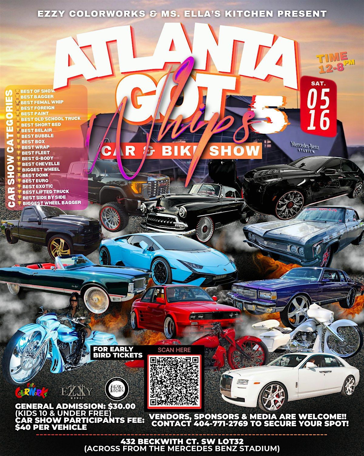 Get ready for ATLANTA GOT WHIPS 5, the ultimate in-person car event where style meets power! Cruise through an epic showcase of the hottest rides, meet fellow car enthusiasts, and soak up the energy of the ATL car scene. Whether you’re all about the classics or love the latest whips, this is the spot to be. Don’t miss out on the fun, the vibes, and the sick rides. See you there!