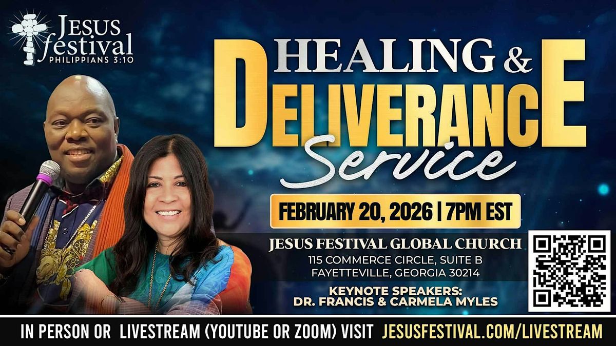 Join us for a powerful Healing & Deliverance Service at Jesus Festival Global Church on Friday, February 20, 2026, at 7 PM EST.