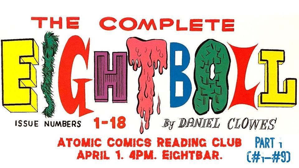 We meet once a month in Eightbar. (Here are the next several graphic novels we're reading. We'll announce more books soon.)NOTE THE CHANGE: We've decided to break up the Complete Eightball over 2 meetings (Apr. & May).
