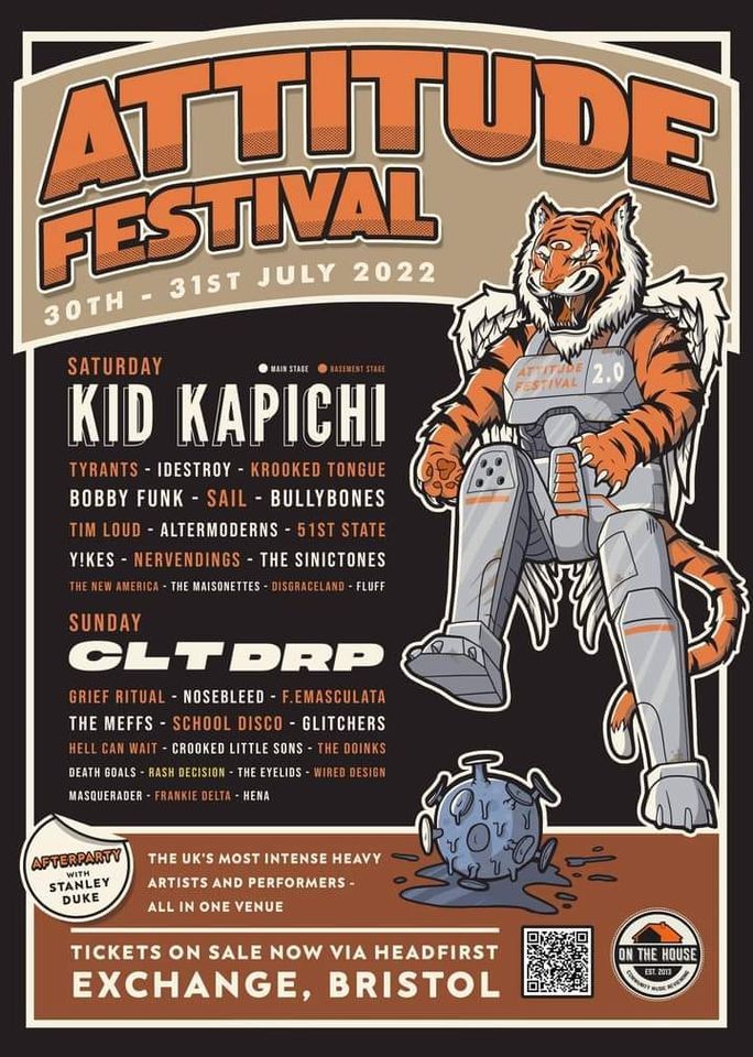 Attitude Festival was founded to showcase the best and bolded of our heavy underground music scene, ranging from punk, rock n roll & hardcore to post-rock, metal and emo. We use suggestions from music reviewers across the UK music scene to slowly build the perfect lineup of angry artists. It's the future, baby!