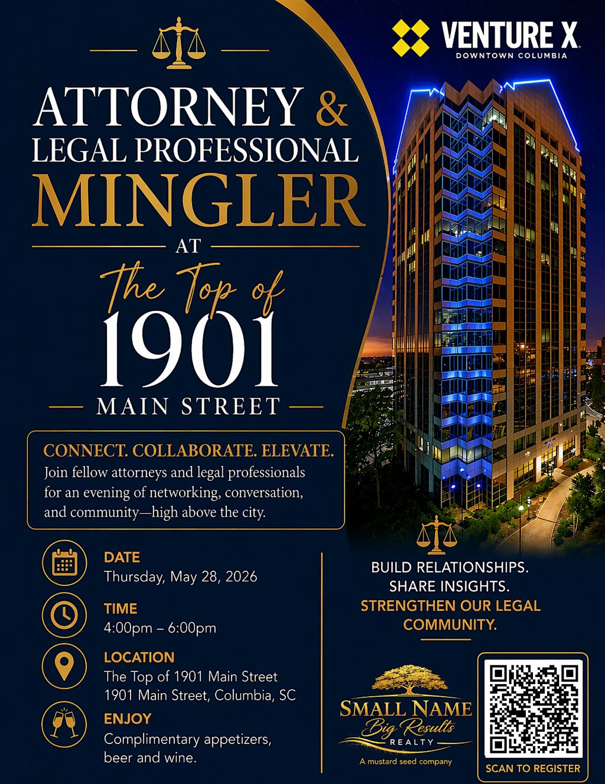 Join a curated group of attorneys and legal professionals for a high-energy networking experience set against breathtaking panoramic views of Downtown Columbia 🌆